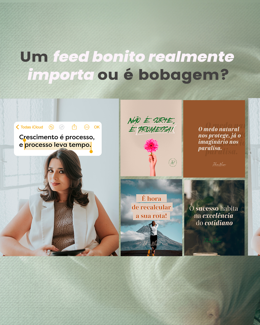 Os posts ficam lindos, com a minha essência, e eu posso focar no que realmente importa, sabendo que minhas redes sociais estão nas melhores mãos.